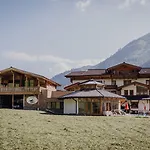 Fusch an der Grossglocknerstrasseにあるホテル Feriendorf Ponyhofは豪華なビュッフェスタイルの朝食を提供します. Fusch an der Grossglocknerstrasseの宿泊はラウンジバ-も提供しています.